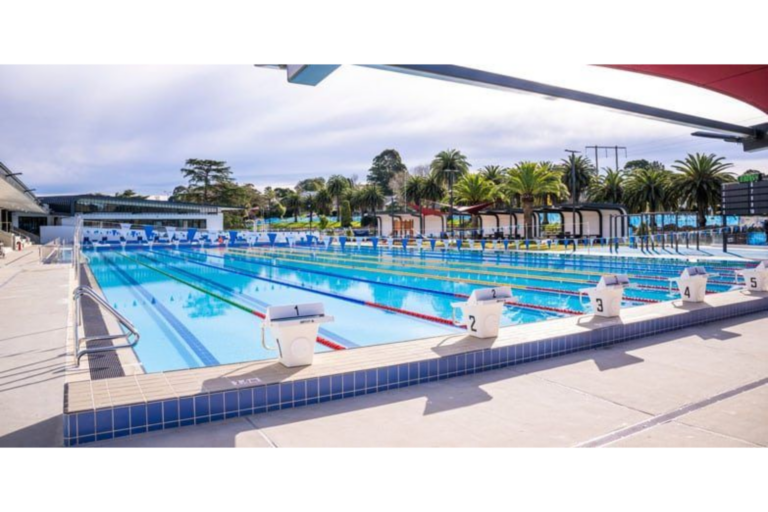 The pool is equipped with numbered visible as through indicating its use for competitive heats and official swim meets.Clearly defined lanes are separated by high-visibility, anti-wave lane ropes in red,…